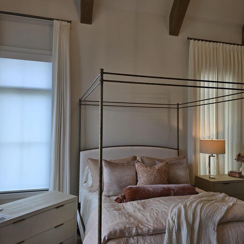 Pinnacle Custom Window Coverings installed custom draperies, motorized roller shades, and Roman shades in a home in Brentwood, TN. The project combined multiple window treatments to match the needs of each room while ensuring a clean and accurate fit.